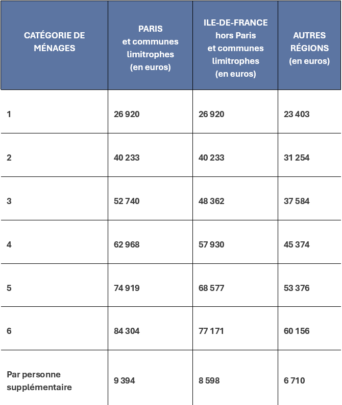 Chaque année, les plafonds de ressources sont modifiés. Pour 2026, le revenu fiscal de référence du locataire ne doit pas dépasser :